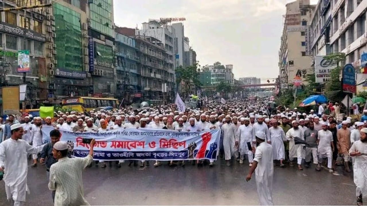 নর্থ সাউথ বিশ্ববিদ্যালয়ের শিক্ষার্থী অপূর্ব পালের বিরুদ্ধে কোরআন অবমাননার অভিযোগের প্রতিবাদে শুক্রবার জুমার নামাজের পর রাজধানীর মিরপুরে এক বিশাল বিক্ষোভ মিছিল ও সমাবেশ অনুষ্ঠিত হয়েছে। ইমাম-উলামা ও সাধারণ মুসলিম জনতার উদ্যোগে আয়োজিত এই সমাবেশ থেকে বক্তারা অভিযুক্ত শিক্ষার্থীর বিরুদ্ধে অবিলম্বে কঠোর আইনগত ব্যবস্থা গ্রহণের দাবি জানিয়েছেন। এছাড়া, ধর্মীয় অনুভূতির প্রতি সরকারের যথাযথ মনোযোগ না থাকায় গভীর অসন্তোষ প্রকাশ করা হয়।