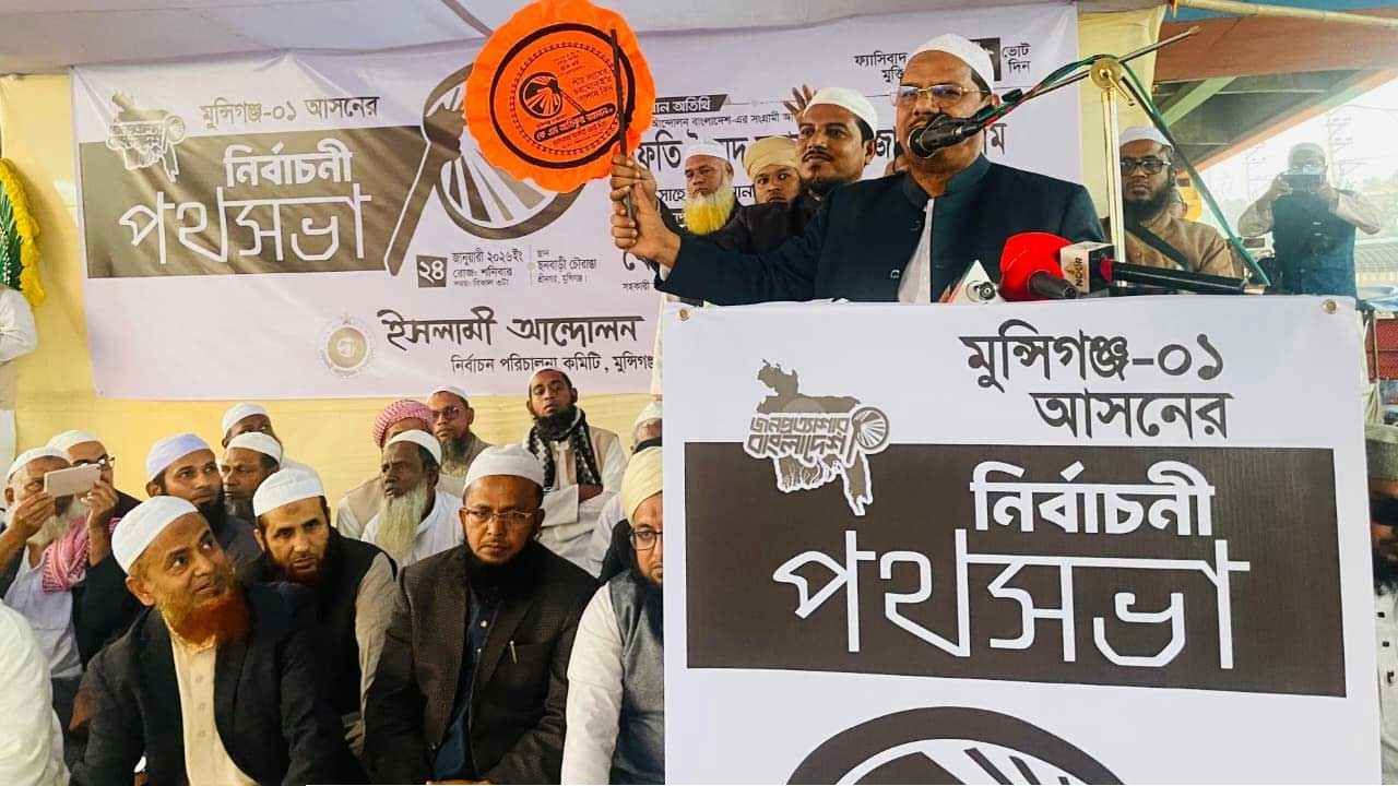 মুন্সিগঞ্জ-১ ও ২ আসনে ইসলামী আন্দোলন বাংলাদেশ মনোনীত প্রার্থীদের সমর্থনে আয়োজিত এক বিশাল জনসভায় প্রধান অতিথির বক্তব্যে চরমোনাই পীর দেশের বর্তমান রাজনৈতিক প্রেক্ষাপট ও ইসলামী দলগুলোর মেরুকরণ নিয়ে গুরুত্বপূর্ণ মন্তব্য করেন।